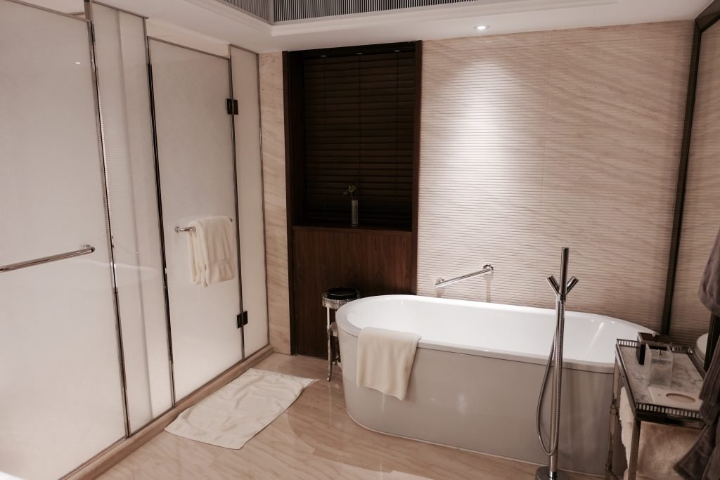 Bedrooms are calm and understated, often featuring soft lighting, premium linens, and carefully curated furnishings. Bathrooms are spacious, typically including large bathtubs, rainfall showers, and luxurious amenities from high-end European brands.