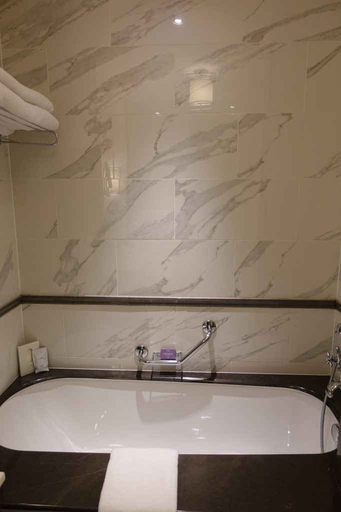 Bathrooms are typically finished in marble, offering a clean and polished feel, often with both bathtubs and separate showers depending on the room category.